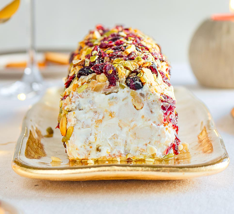- Τον γαρνίρουμε με κράνμπερι και σταφίδες και τον σερβίρουμε με κράκερ.