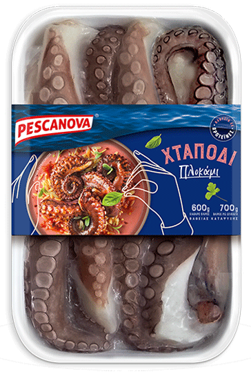 - Παράλληλα, κόβουμε τα πλοκάμια χταποδιού σε μεγάλα μπουκιές.